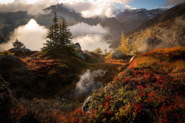 Plongez dans la féérie automnale des lacs d’Émosson (Valais, Suisse) : brumes mystérieuses, myrtillers flamboyants, reflets turquoise et lumières dorées sublimées par l’objectif d’Alexandre Deschaumes.