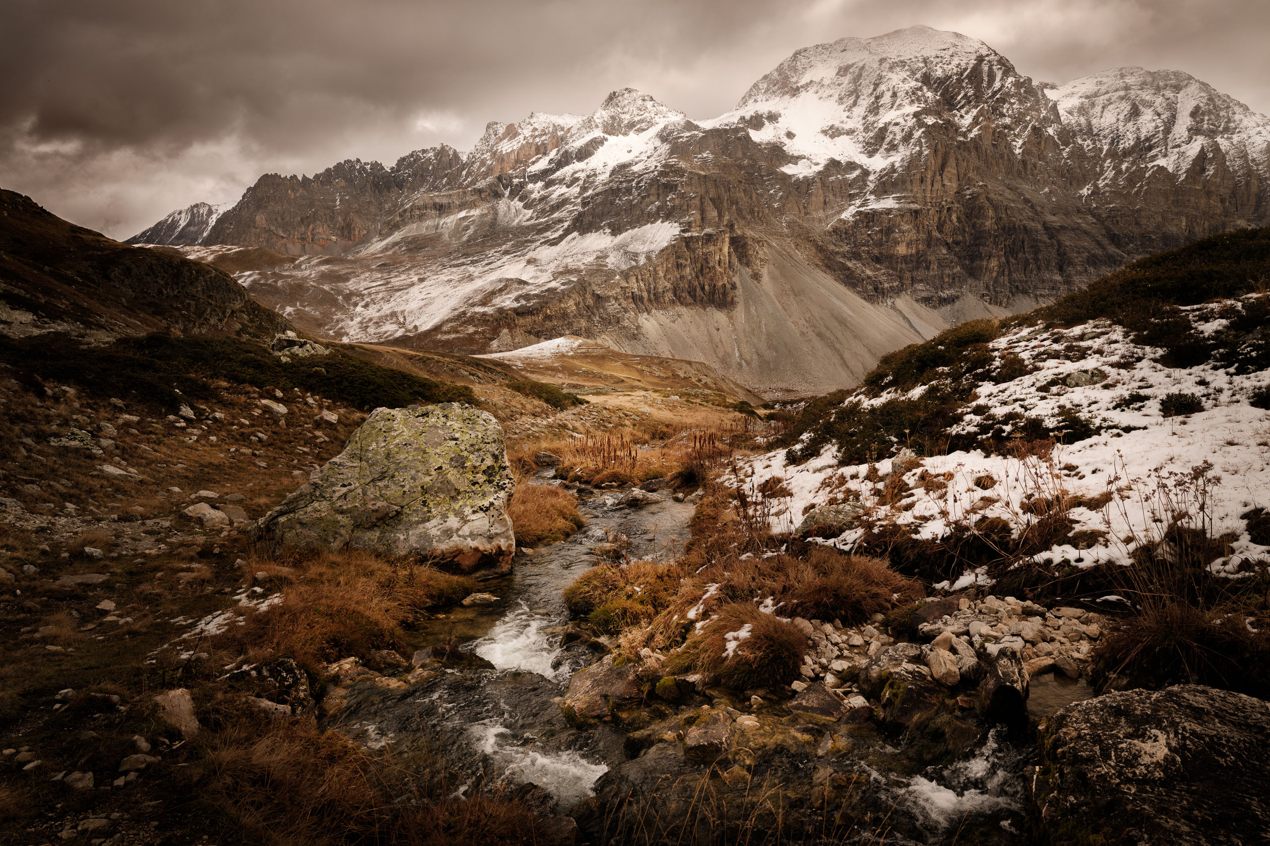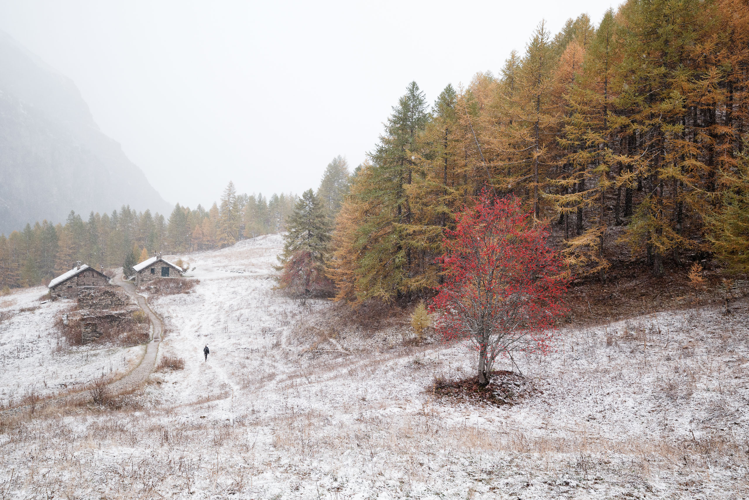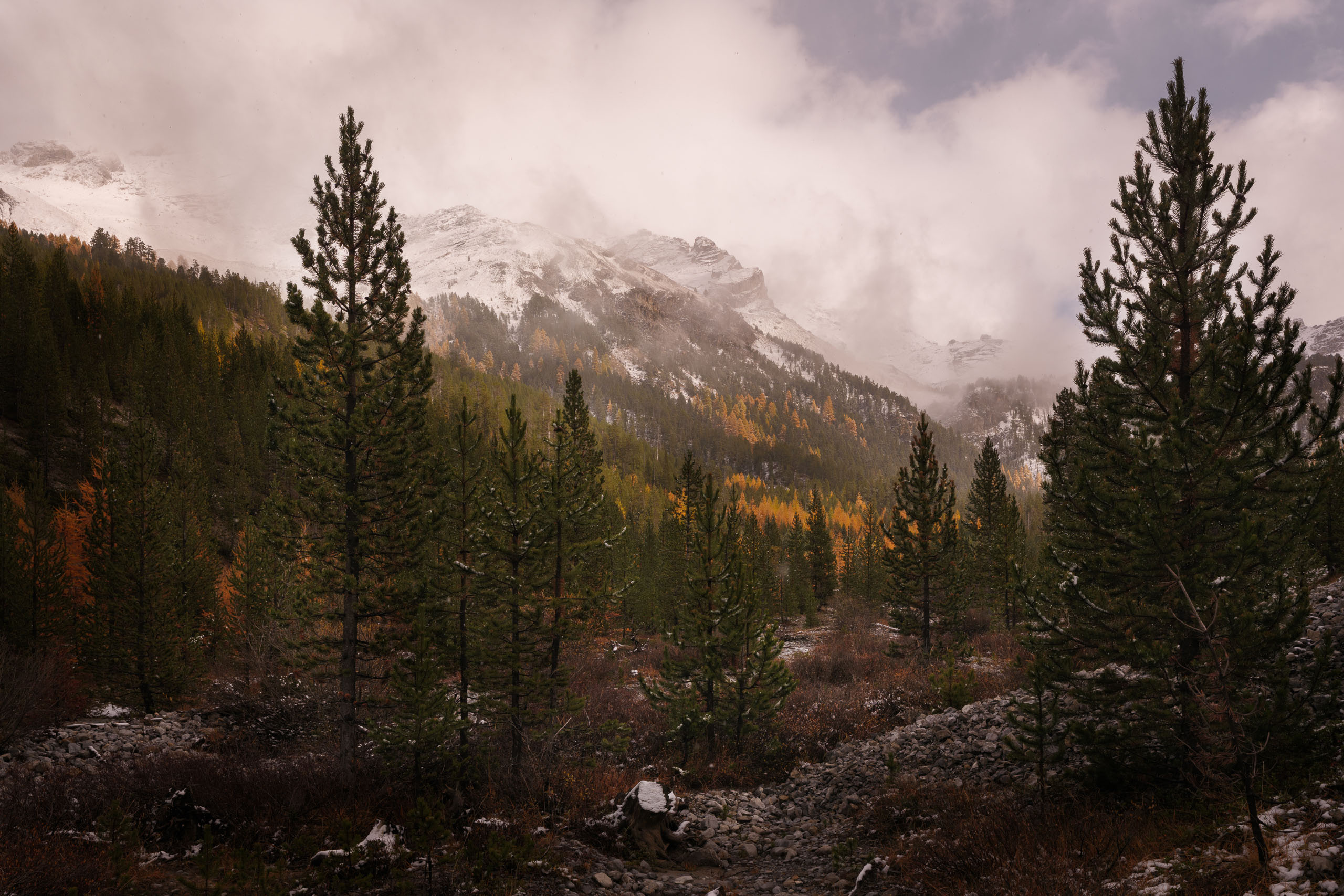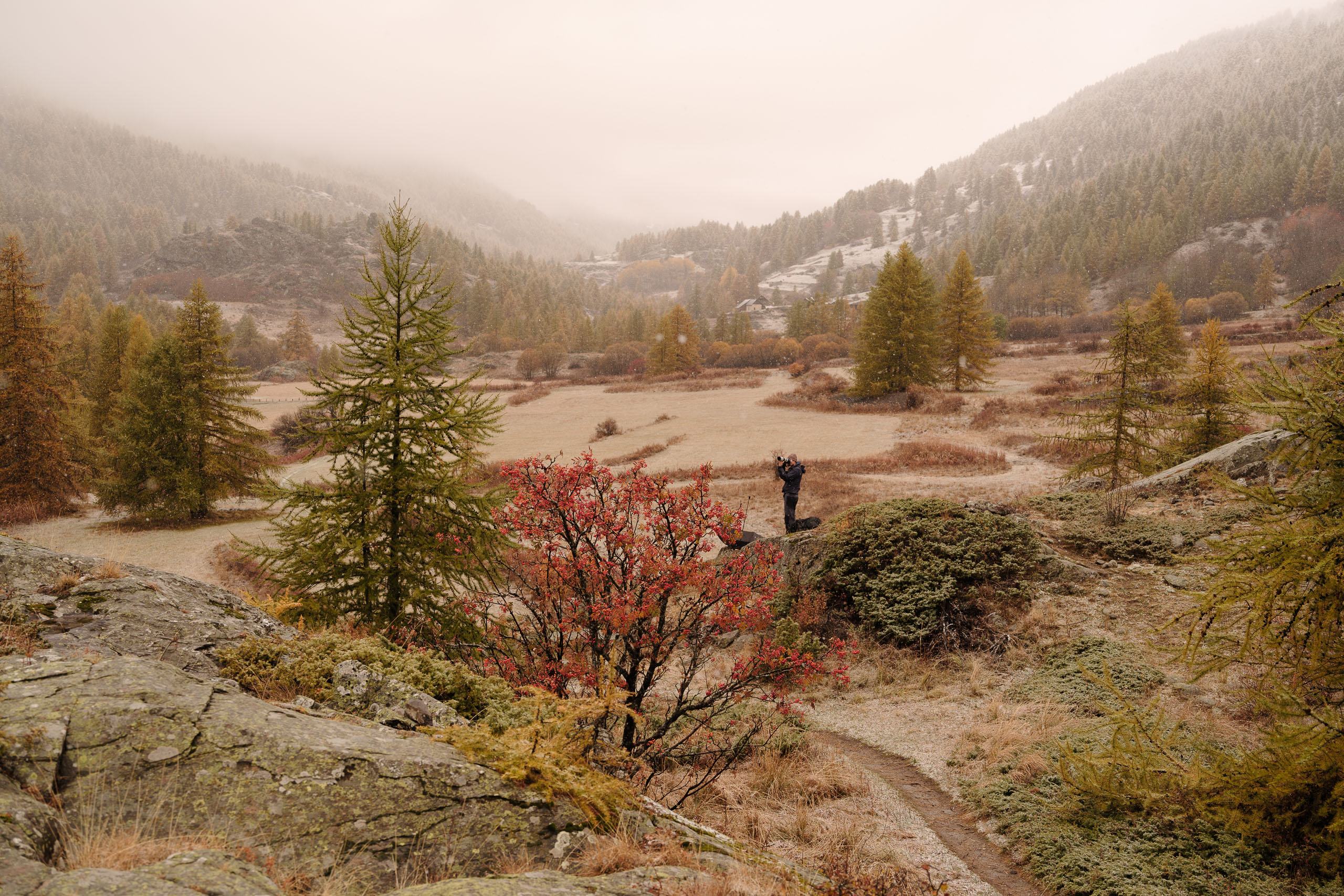 Entre brumes, premières neiges et lumières changeantes, la vallée a révélé une richesse de formes et de matières que seule l’instabilité météorologique permet.