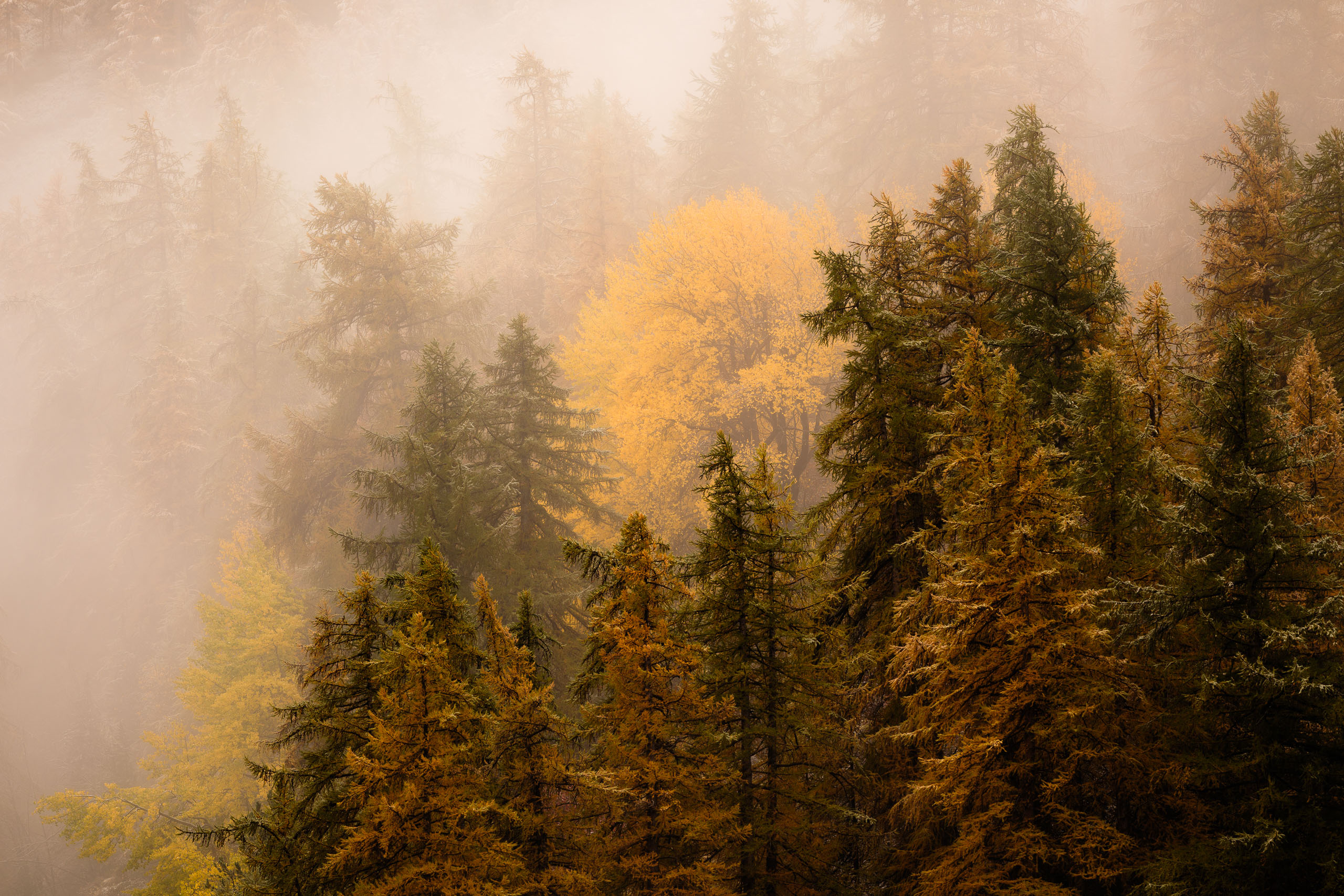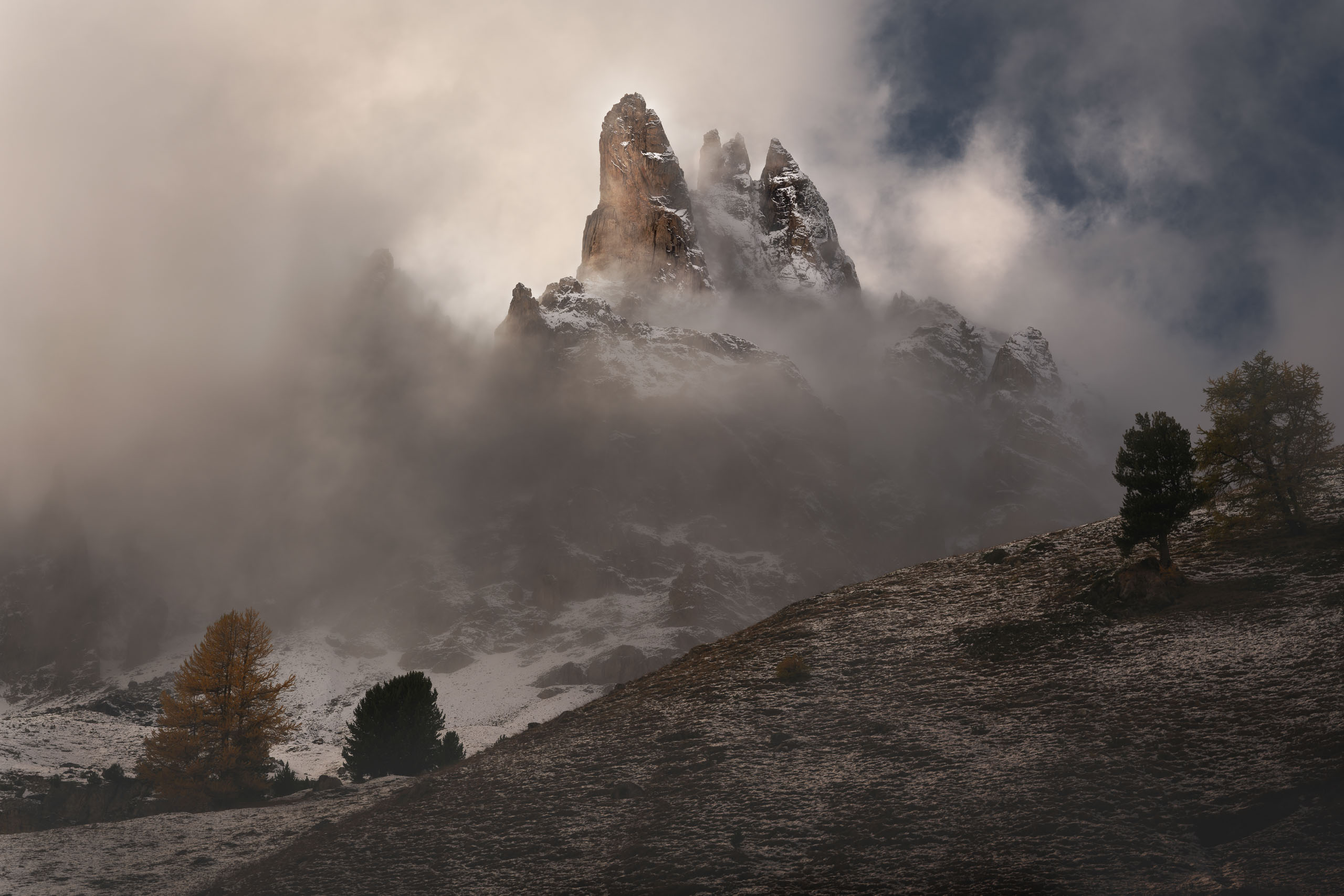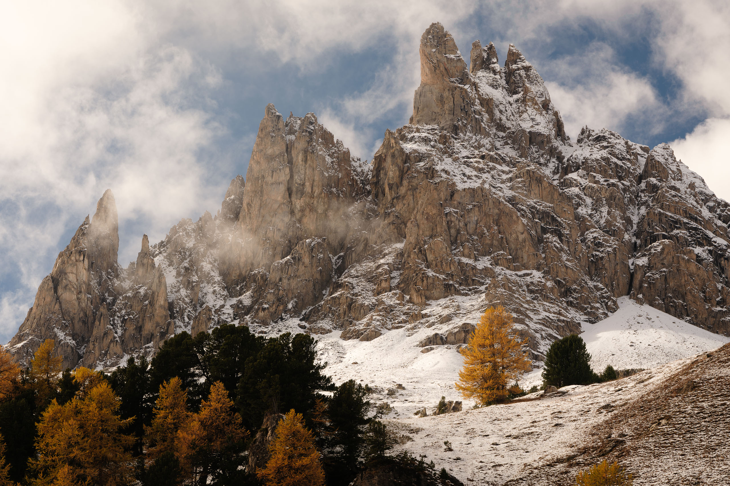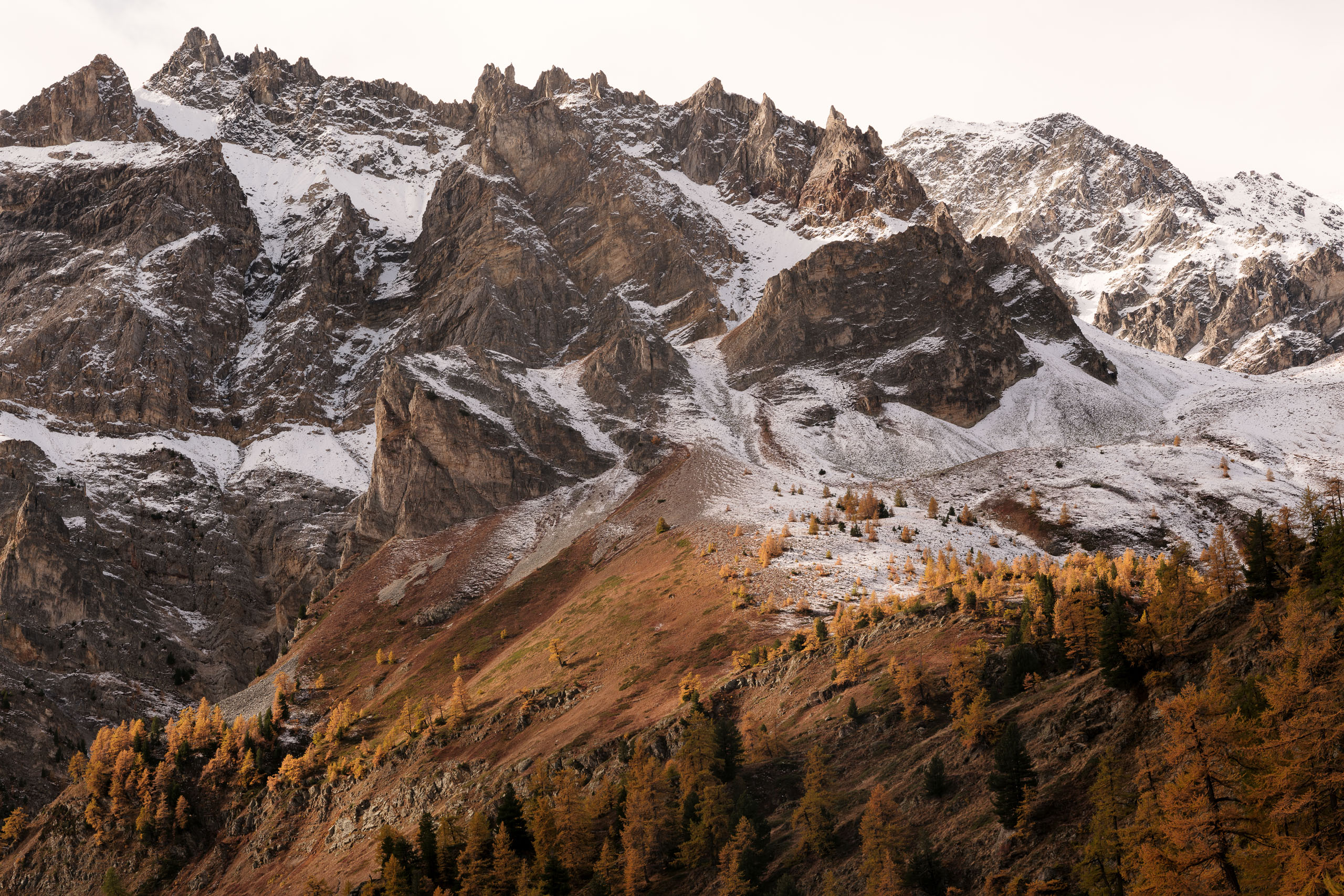 Les premières neiges ont souligné les lignes des pentes. Les mélèzes ont vibré sous la lumière diffuse. La roche s’est chargée de profondeur.